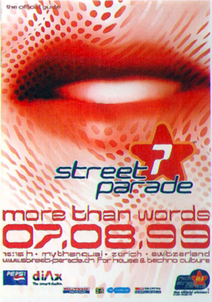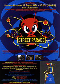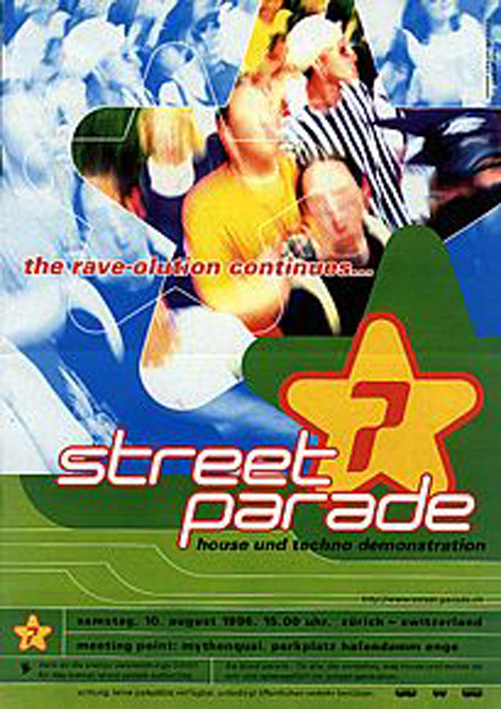Januar 1993: Die Street Parade erhält nur mit Auflagen eine Bewilligung – Tanzen auf der Bahnhofstrasse ist gestrichen.Trotzdem wird sie zum Mega-Event. Mit Techno-Größen wie Sven Väth und Dr. Motte zieht sie über 10'000 Menschen an. Zum ersten Mal findet die «Energy» im Hallenstadion statt – Zürich ist nun offiziell auf der Techno-Landkarte.