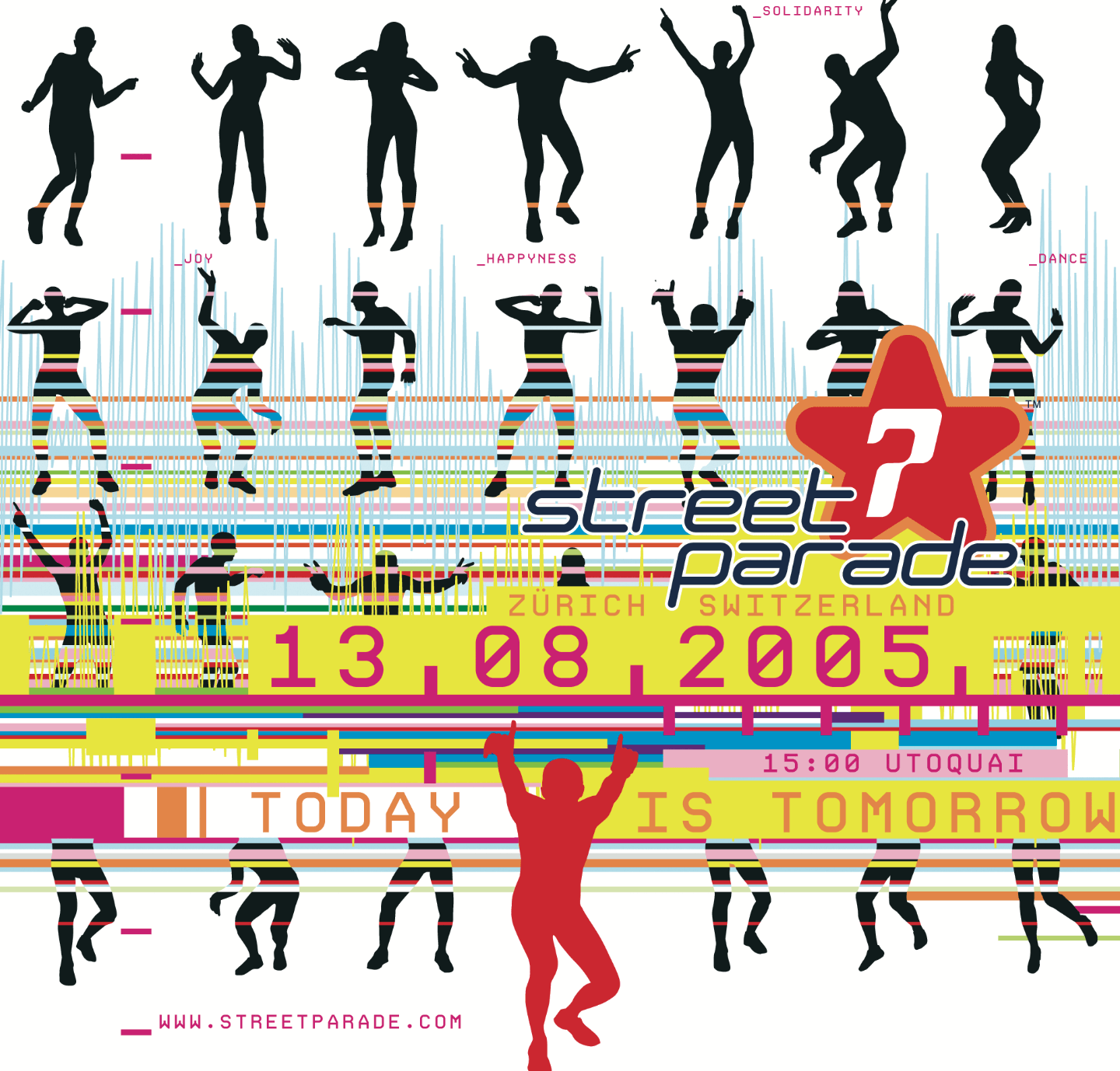 «Let the sun shine» lautete das Motto – und Petrus nahm’s wörtlich: Bei brütenden 37 Grad knallte die Sonne erbarmungslos auf die Zürcher Strassen. 900'000 feierten die «heisseste Parade aller Zeiten» ausgelassen. Zum ersten Mal wurde die altbewährte Route in umgekehrter Richtung befahren. Punkt 15.15 Uhr startete das erste Love Mobile vom Utoquai (höhe Rest. Frascati) und fuhr diesmal übers Bellevue, Bürkliplatz bis zur Zieleinfahrt am Mythenquai. Star-DJ Carl Cox verwandelte den Bürkliplatz in ein Tollhaus. Er legte an der offizlellen Abschluss-Party auf der Hauptbühne die besten Scheiben auf und spielte sich in die Herzen der rund 25’000 House-Freaks.