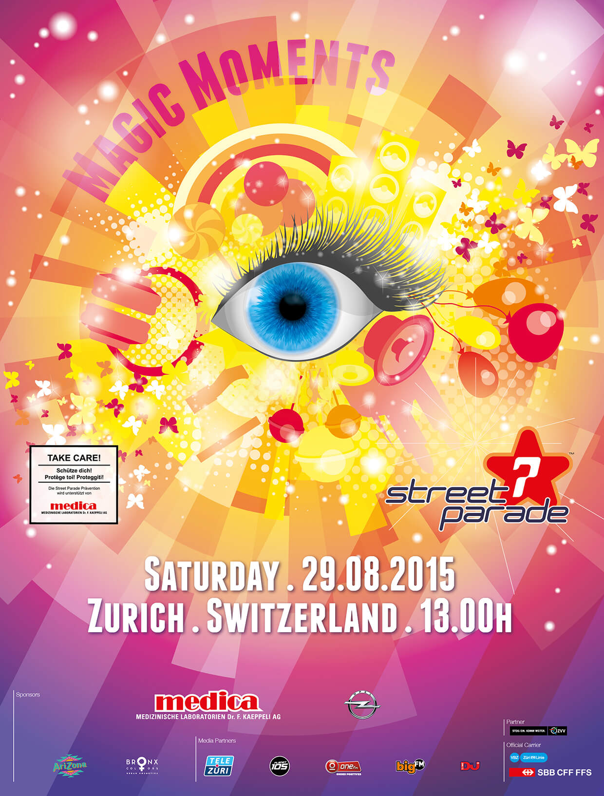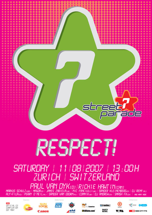 Zum Jubiläum kehrte die Street Parade mit dem Motto «Love, Freedom, Tolerance» zu ihren Wurzeln zurück – und zog rund 1 Million Raver aus ganz Europa an. Bei Sonnenschein und kühlen 21 Grad tanzte Zürich ausgelassen und friedlich.Für die kreative Umsetzung der Website gab es Bronze vom ADC. Zum Abschluss stieg eine offizielle Birthday-Party mit Star-DJs und Visuals – auf dem Bürkliplatz und Bellevue wurde bis Mitternacht weitergefeiert.