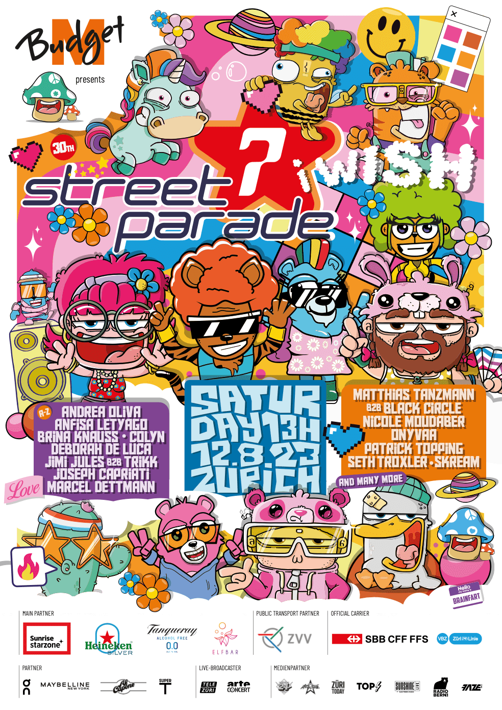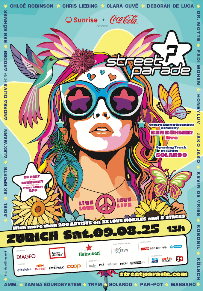 Bei kühlen 18 Grad brauchte der Tag etwas Anlauf, doch pünktlich zum Start der Parade brach die Sonne durch – der Regen wartete geduldig bis nach Mitternacht. DJ-Legende Sven Väth eröffnete die Parade beim Frascati unter tosendem Applaus. Q-Dance verwandelte den Bürkliplatz mit einem märchenhaften, orangefarbenen Schloss in eine Showbühne. Noch vor dem ersten Beat um 13 Uhr war der Platz brechend voll, der Tramverkehr kam ins Stocken.